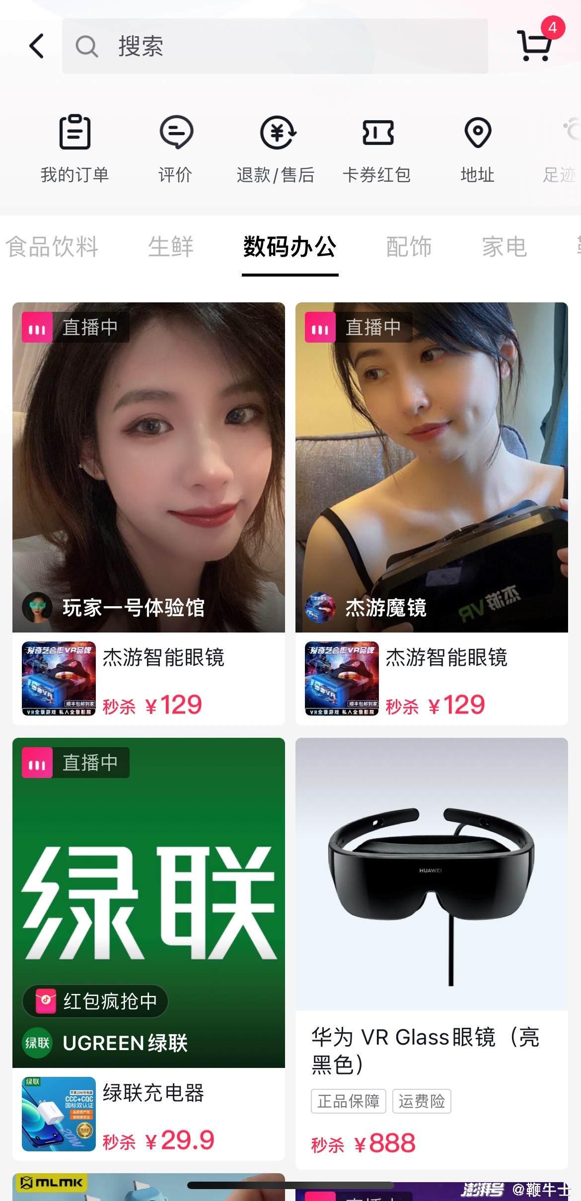 打开抖音商城,如今的菜单栏分为精选、食品饮料、生鲜、数码办公、家电、鞋靴、彩妆、男装、配饰、女装、母婴、百货、护肤、洗护、厨具、图书、运动、家纺、珠宝文玩、家装、绿植农资、车品等,每一栏下是由直播频道和商品组成的“双瀑布流”。